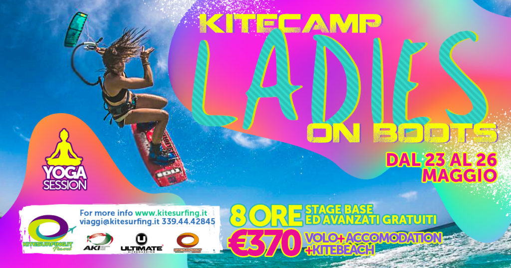 Dal 23 al 26 maggio il portale Kitesurfing.it in collaborazione con l’Associazione Kitesurf Italiana organizzano allo Stagnone di Marsala la prima edizione di Ladies on Boots, il kitecamp esclusivo per ragazze.